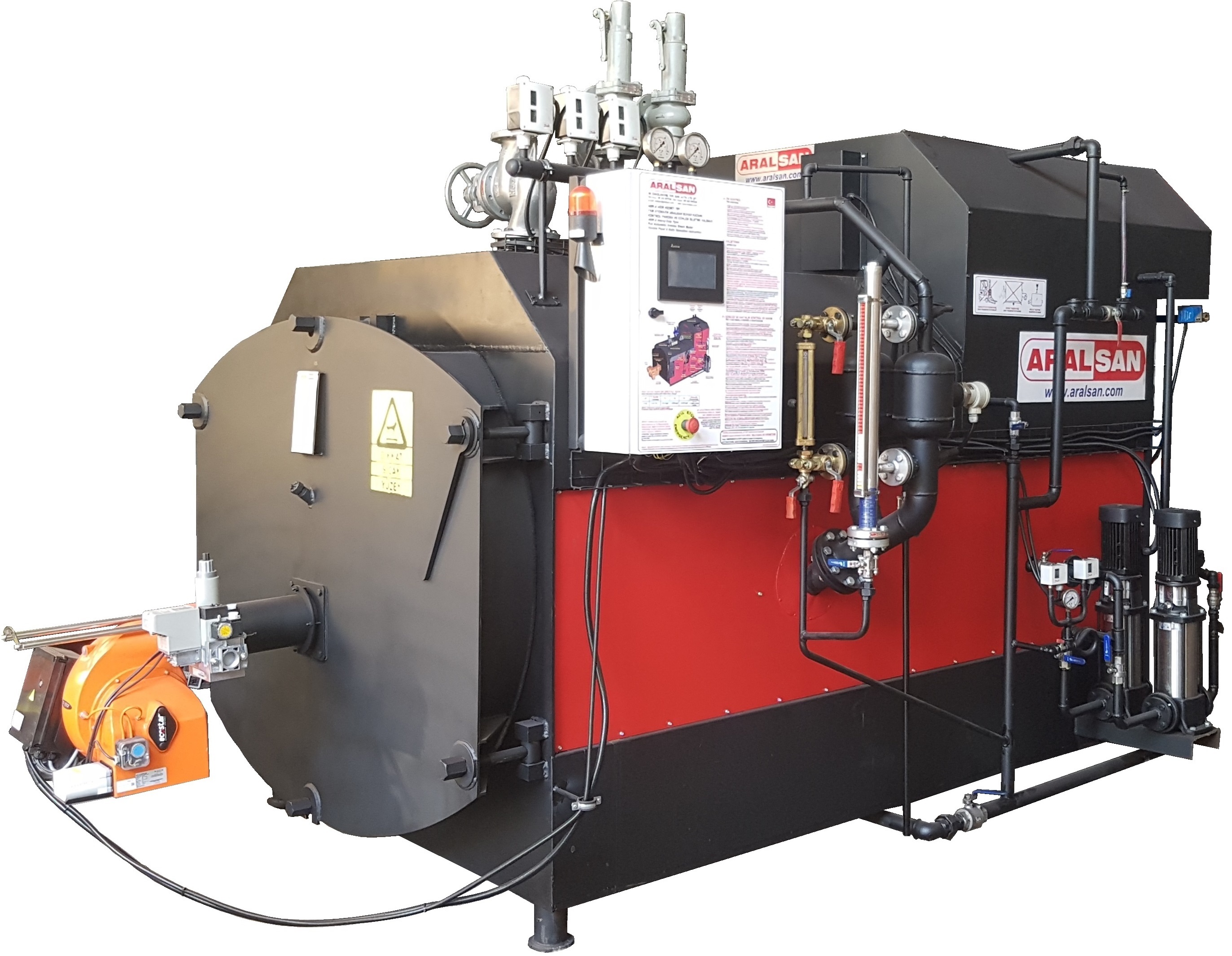 Language TurkishVertical Tabs Genel 750 kg/h ile 8 000 kg/h buhar üretim kapasite aralığında, gaz veya sıvı yakıtlı olarak ve 0.5 bar ile 20 bar işletme basıncı aralığında değişik kapasitelerde müşteri talebine göre üretilir. Kapasite Aralığı Kullanım güvenliğinin garantisi olan CE sertifikalı olarak üretilir ve CE işareti taşır. 200 kg/h ile 8 ton/h kapasite ve 0.5 bar ile 20 bar işletme basıncı aralığında müşteri isteğine bağlı olarak değişik kapasitelerde üretilir. Yanma hücresi gaz ve sıvı yakıt yakmaya uygun tasarlanmıştır. TAK - ÇALIŞTIR mantığı ile üretilir. Tüm donanımı monte edilmiş olarak kullanıma hazır durumda teslim edilir. İsteğe bağlı olarak entegre degazörlü kondens tanklı ve entegre ekonomizörlü olarak üretilebilir. PLC kontrollü kullanıcı dostu kontrol panosu ile kullanımı son derece kolaydır. Elektrik, su, buhar, yakıt ve baca bağlantıları yapıldığında kullanıma hazır duruma gelir. Yakıt Tipi Doğal Gaz, Fuel-Oil, Motorin, LPG, CNG, LNG, Bio-Dizel, Piroliz Gazı Standart İşletme Donanımı Kazan gövdesi PLC kontrol panosu Eloksal alüminyum şık kazan işletme talimatı Brülör Kazan besi pompası Pompa vanaları, disko-çekvalfler, havalık vanası, pompa manometresi Ana buhar vanası Havalık vanası Dip blöf vanası Yüzey blöf vanası Su seviye kontrol cihazı (tağdiye cihazı) Su seviye göstergesiBasınç kontrol cihazı (presostat) Basınç göstergesi (manometre) Entegre kondens tankı Kondens tankı su giriş motorlu vanası Kondens tankı seviye göstergesi ve vanaları Kondens tankı su seviye kontrol donanımı Standart Güvenlik Donanımı Emniyet ventilleri Emniyet presostatı Düşük su seviye elektrotları Yüksek su seviye elektrotları Kondens tankı düşük su seviye elektrotları Buhar sıcaklığı kontrol termostatı Baca gazı sıcaklığı kontrol termostatı Pompa alt basınç kontrol şalteri Pompa üst basınç kontrol şalteri Pompa motor koruma rölesi Faz koruma rölesi Sesli ve ışıklı alarm İsteğe Bağlı Donanım Oransal su besleme sistemi Otomatik dip blöf sistemi Otomatik yüzey blöf sistemi Buhar sayacı İstenen buhar debisini sabitleme sistemi Su yumuşatma sistemi Besi suyu dozaj pompası Tank tipi degazör sistemi Sıcak su üretme sistemi Buhar kollektörü Buhar seperatörü Baca ve duman kanalı Bilgisayar destekli data kayıt ve uzaktan izleme sistemi İşletme Özellikleri Tam otomatik çalışır. Buhar basıncına göre yanma tam otomatik kontrol edilir. Son derece güvenlidir. Kazanın her parametresi ayrı ayrı kontrol edilir ve gözlenir. Yüksek verimlidir. Çevre dostudur. Çok düşük baca emisyonu oluşur. Çevre yönetmeliğindeki şartlara tam olarak uyum sağladığından, hiç bir sorun oluşmadan emisyon raporu alınır. Üretim Özellikleri Sertifikalı Ereğli Demir Çelik Fabrikası mamülü kazan sacı ile üretilir. Basınç gurubuna bağlı olarak sertifikalı çelik çekme dikişsiz veya sertifikalı dikişli kazan borusu kullanılır. Duman borularında AISI 316 kalite paslanmaz çelikten mamül özel türbülatörler bulunur. Tüm kaynak işlemleri sertifikalı kaynakçılar tarafından yapılır ve kaynak dikişleri ultrason ile kontrol edilirek hatasız kaynak yapılması sağlanır. Tüm donanım gövde üzerine monte edilir. Kazan dairesinde montaj gerektirmez. Kendisi komple bir kazan dairesidir. Gövde iki kat sıcaklığa dayanıklı kazan boyası ile boyanır ve taş yünüyle izole edilir. Gövde üzerini renkli galvanizli saçla kaplanarak şık bir görünüm sağlanır. Kazan kapağı seramik yünü battaniye ile korunur ve seramik yünü cam suyu ile sertleştirilerek koruma altına alınır. Kapaklarda seramik fitil conta kullanılarak % 100 gaz sızdırmazlığı sağlanır. Metal contalı el delikleri ve gövde çapı 1400 mm'den büyük olanlarda ise ek olarak adam deliği yardımıyla su tarafı temizliği çok kolay yapılır. 5 yıla uzatılabilen ARALSAN garantisine sahiptir. Katalog aralsan_abr-a.pdf Weight: -20
